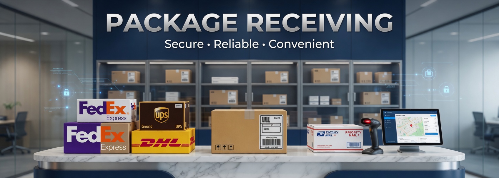 We accept and securely hold packages from any carrier so they're safe from theft and weather until you're ready to pick them up.